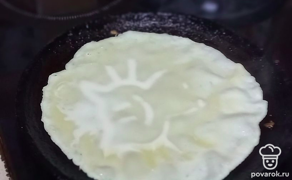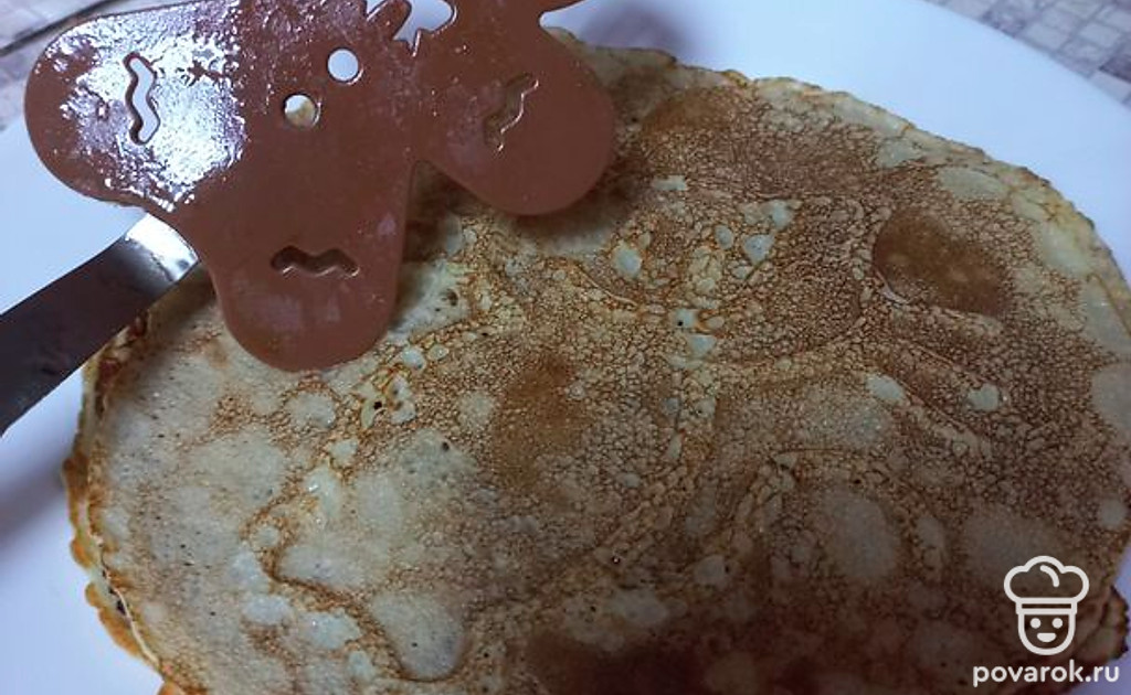 Выпекать блины на сковороде обжаривая с двух сторон.