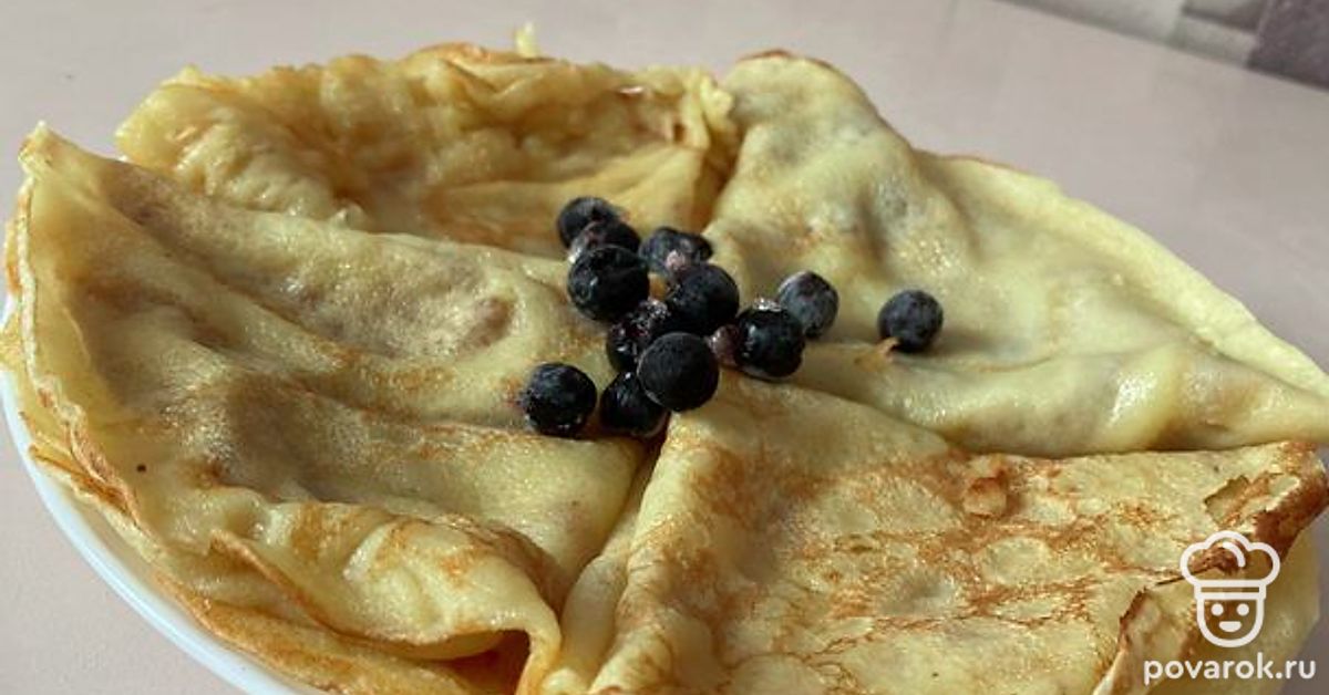 Рекомендую вам приготовить блинчики по этому рецепту. Получаются очень нежными, тонкими и вкусными.