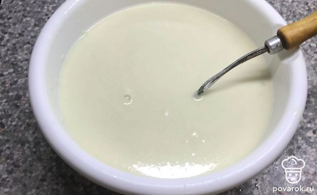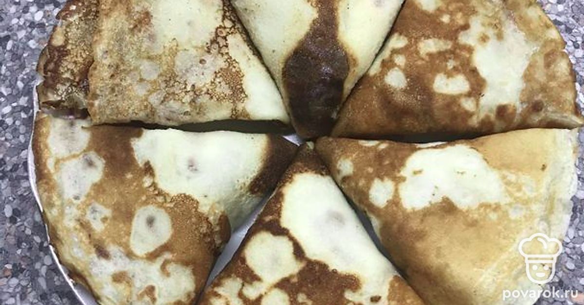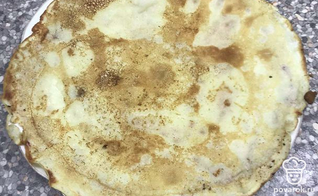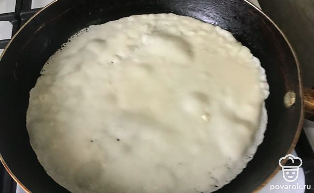 На разогретую сковородку наливаем тесто, формируем блин и печём 2-3 минуты.