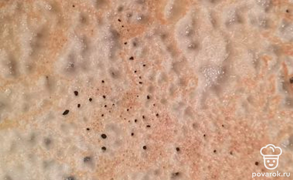 Обжариваем блин с двух сторон. Готовим, пока не кончится смесь.