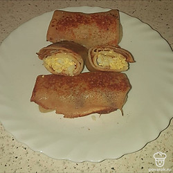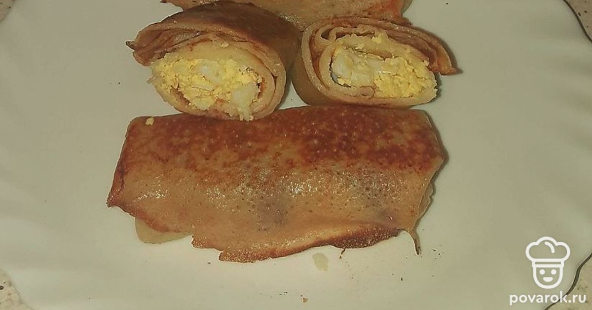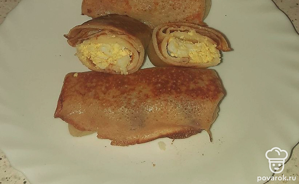 Вкуснейшие блинчики с перепелиным яйцом готовы. Подайте со сметаной.