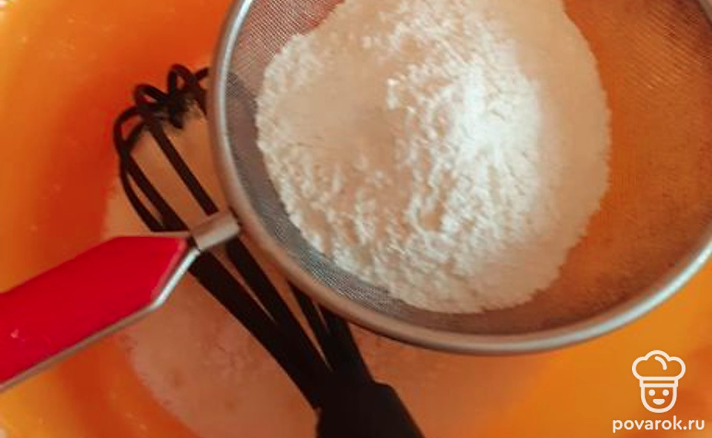 Просейте через сито муку перемешивайте до тех пор, пока не пропадут комочки.