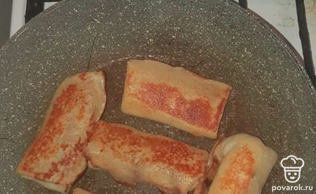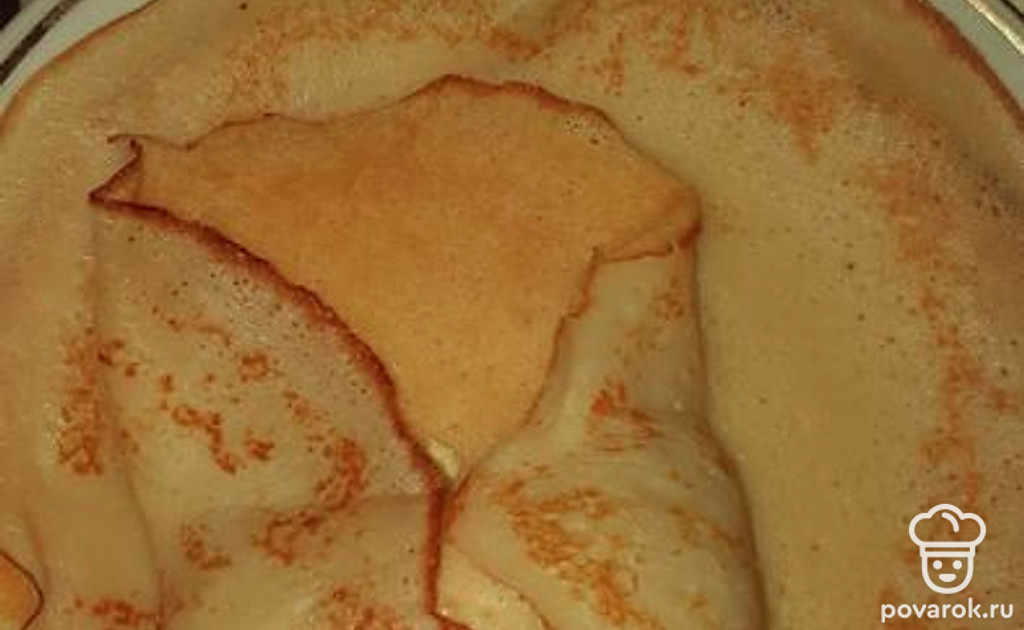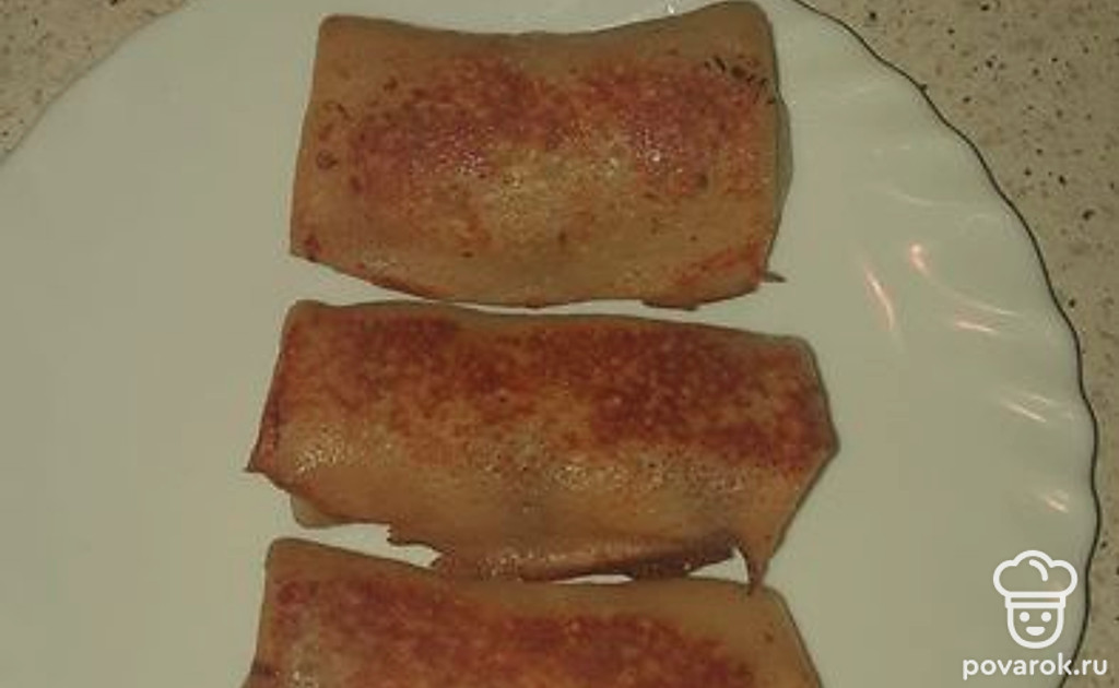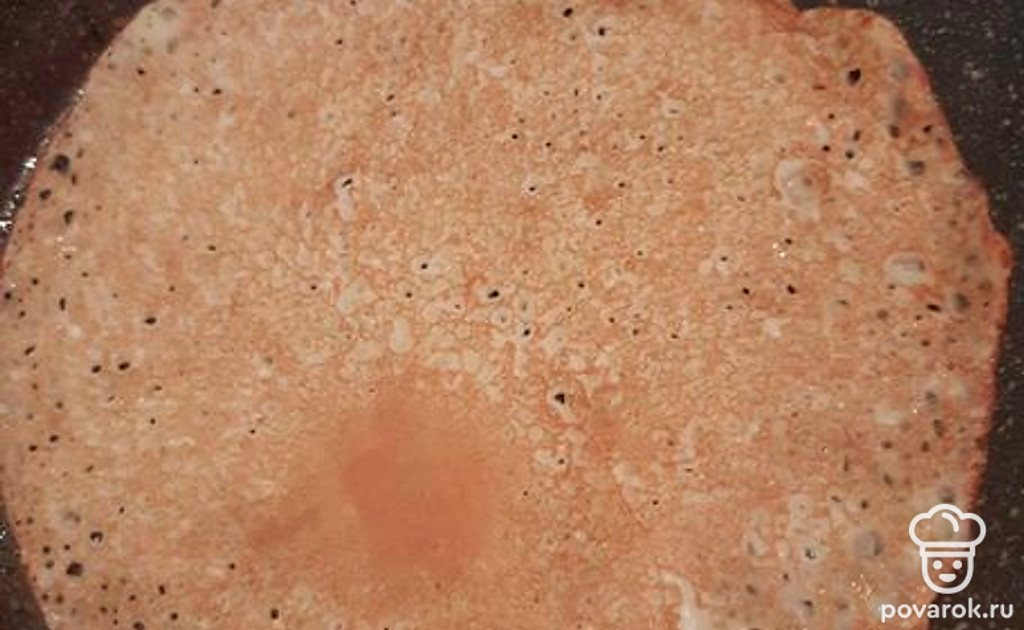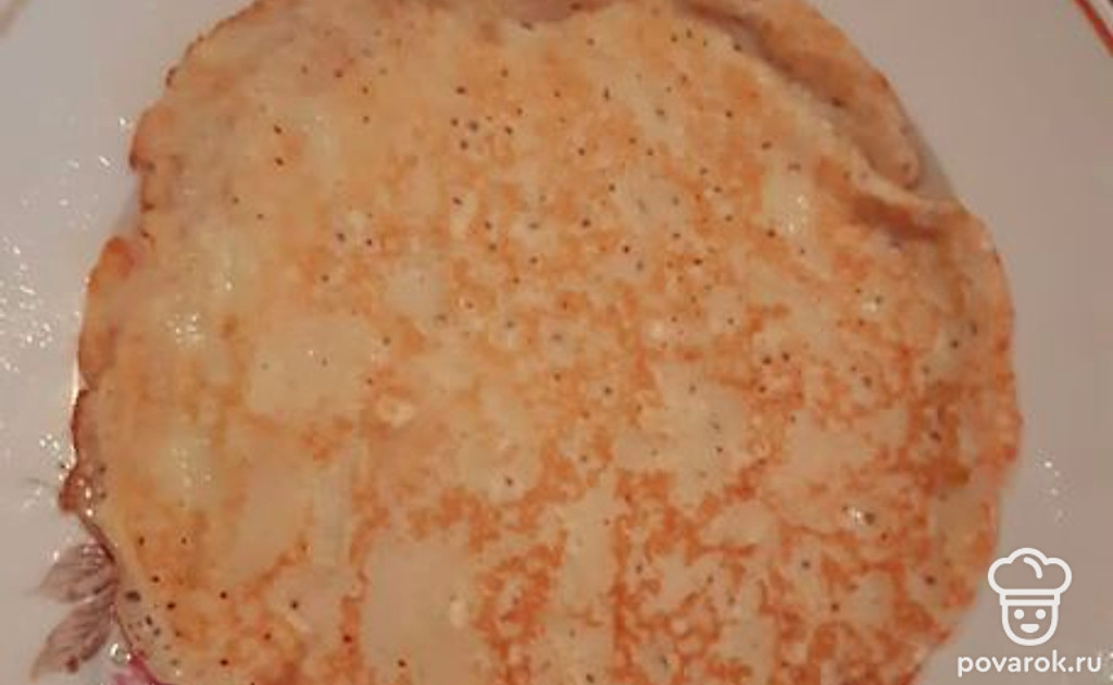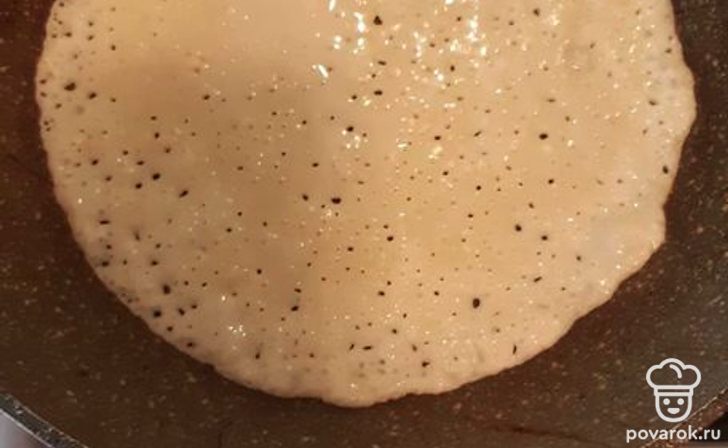 На назогретую сковородку налейте тесто тонким слоем, обжарьте до золотистой корочки.