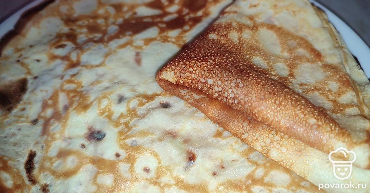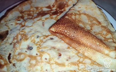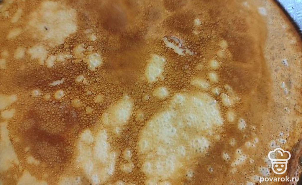 Переворачивать блинчик следует после того, как его край станет румяным. Со второй стороны блин обжаривается быстрее.
