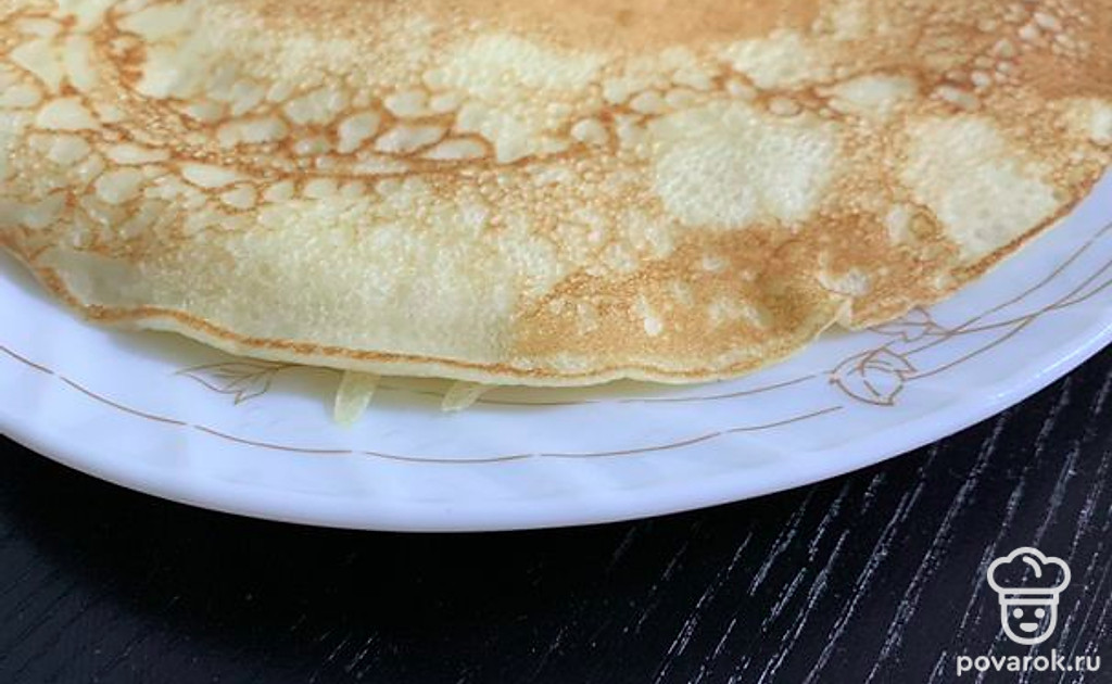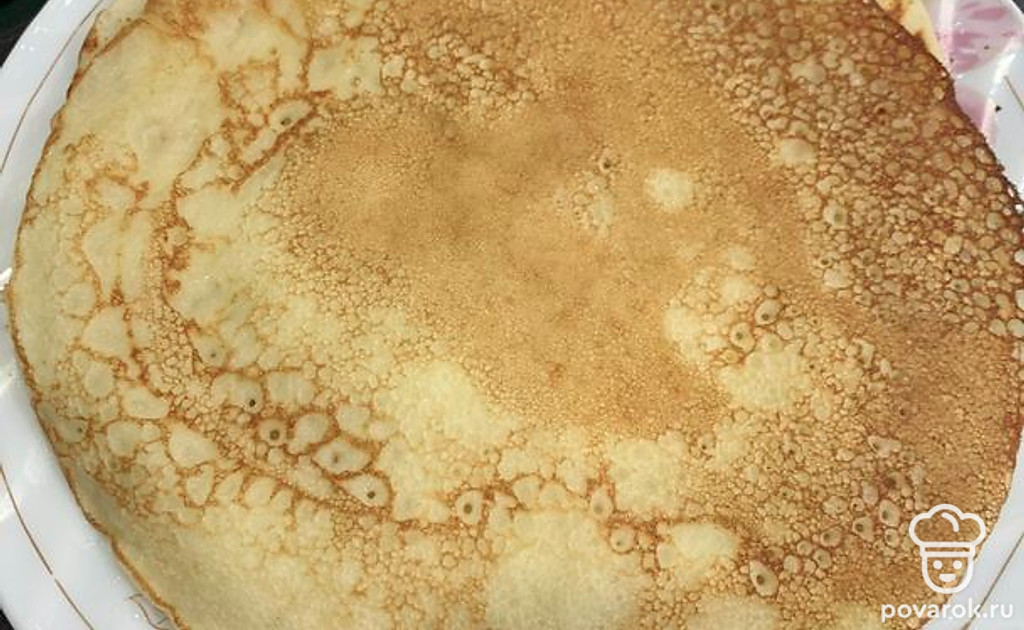 Печь блины на среднем огне до золотистого цвета с двух сторон. Приятного аппетита.