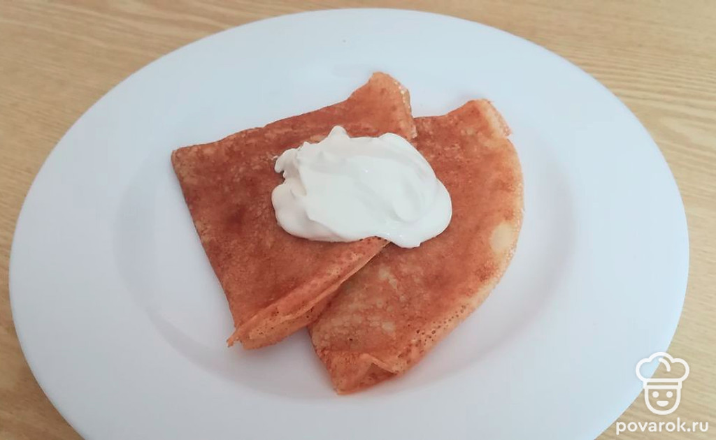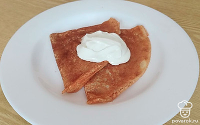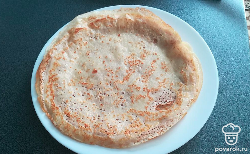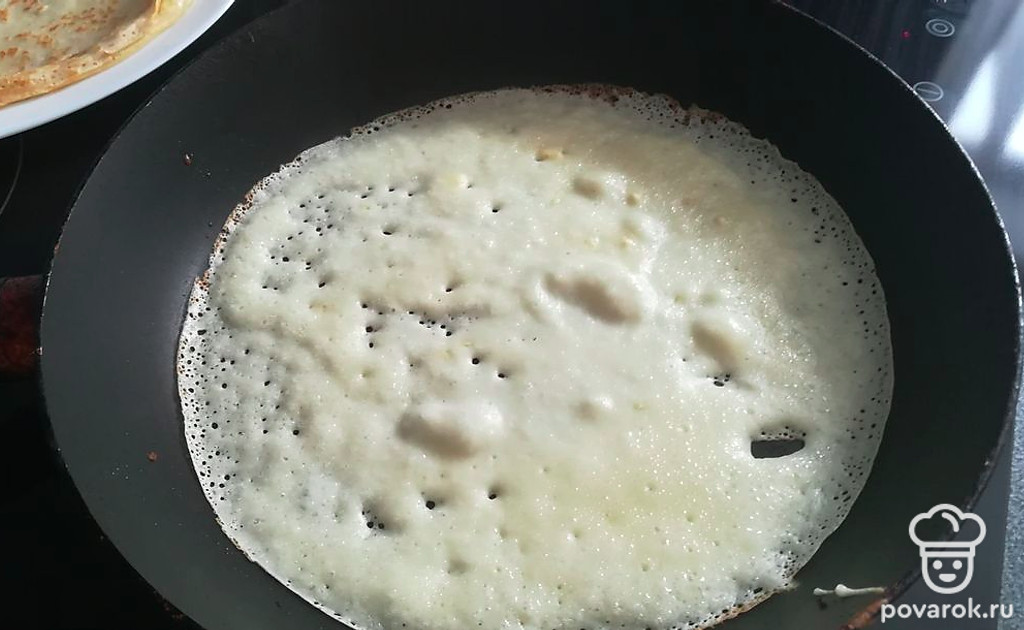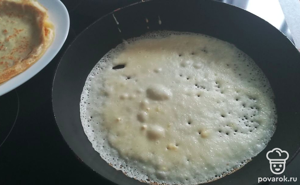 На сковороду налить немного масла и первый выпекать блин на очень разогретой сковороде.