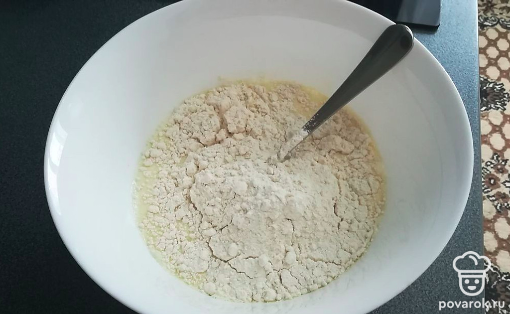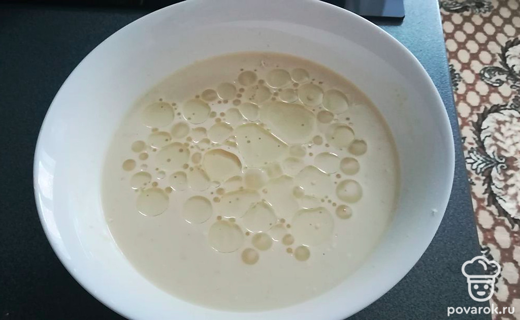 Добавить в тесто масла и размешать. Дать тесту настояться.