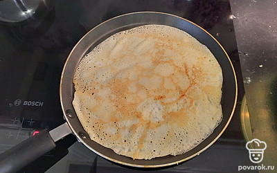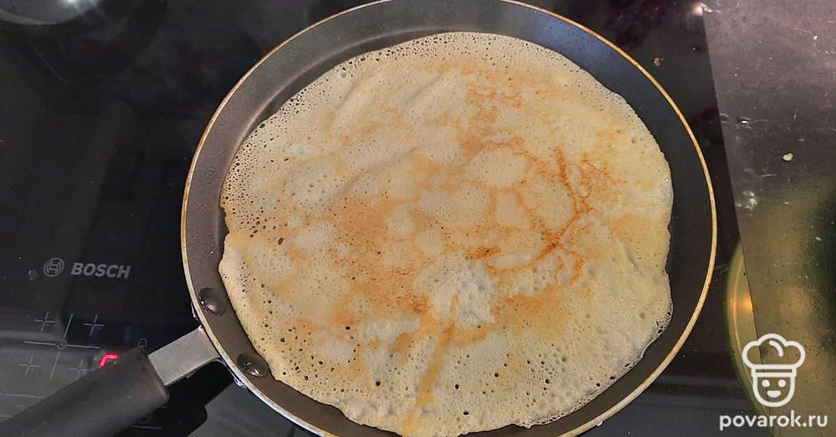 Жарим блинчик с двух сторон на разогретой сковороде.