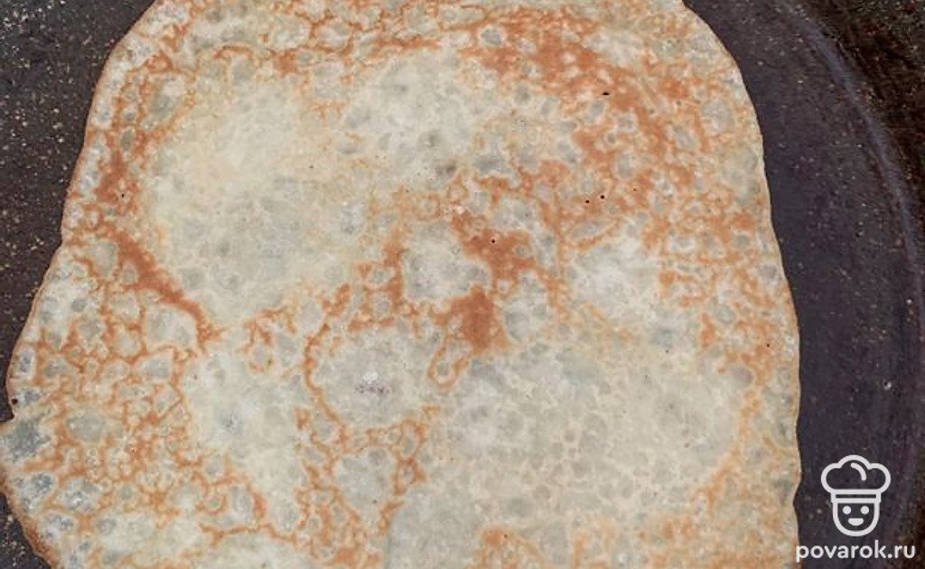 Выпекать на подсолнечном масле по 2-3 минут с каждой стороны блина.