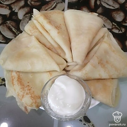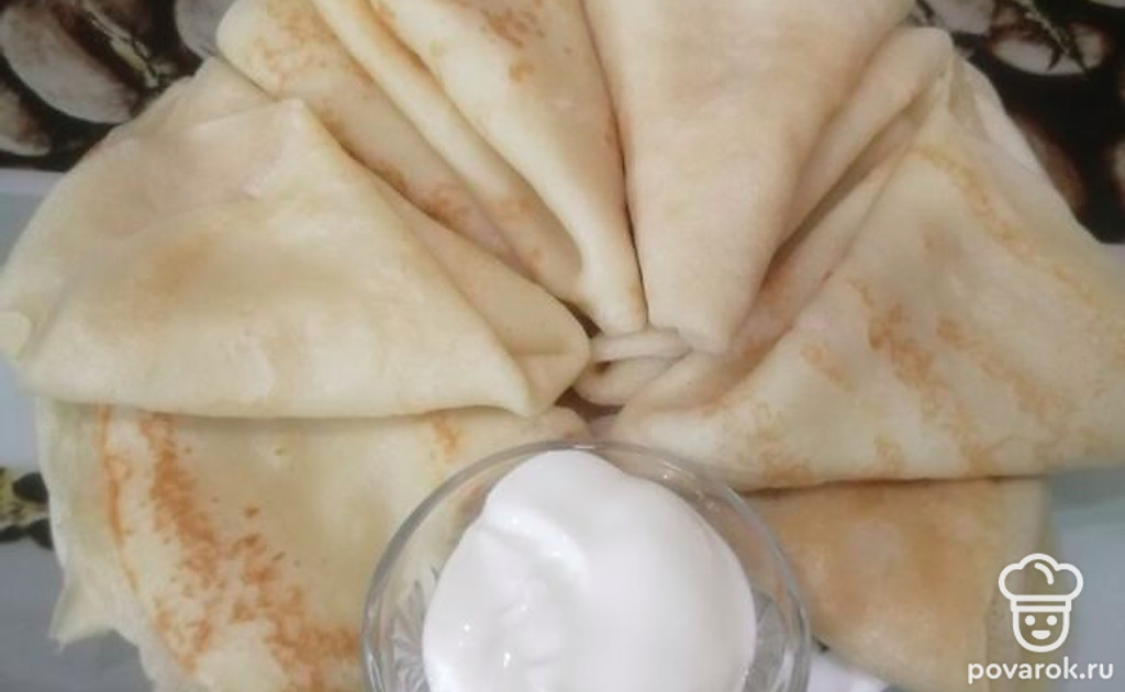 Блинчики подаём горячими, смазав сливочным маслом. Можно блинчики подавать со сметаной, джемом, карамелью. А можно завернуть в блинчики мясную, яичную начинки.