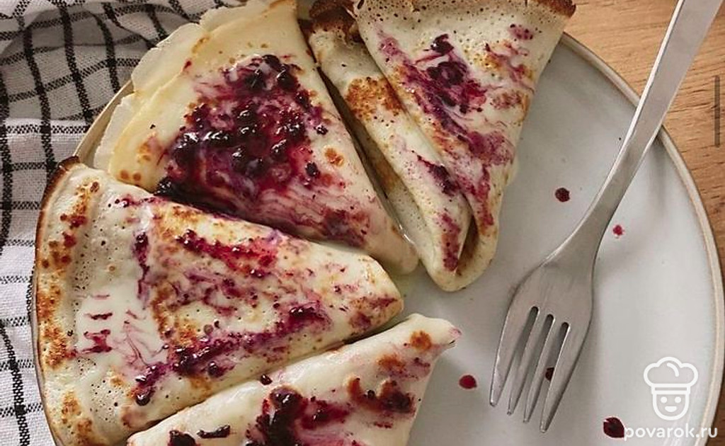 Добавляйте к блинчикам вкусные начинки - варенье, сметана, сгущенка! Приятного аппетита!