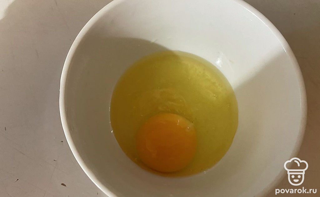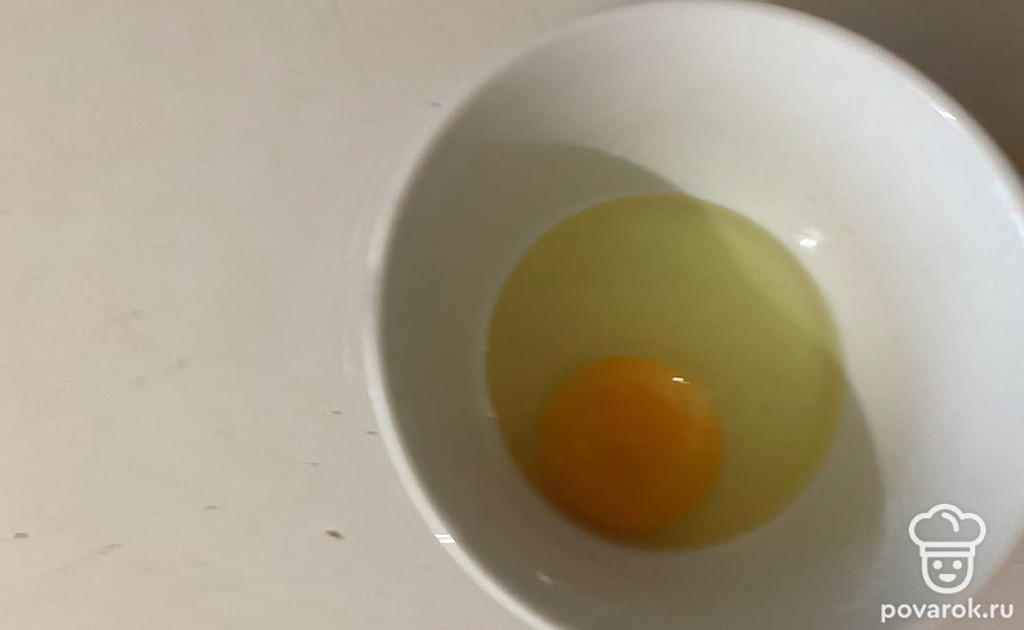 В миску разбейте яйцо.