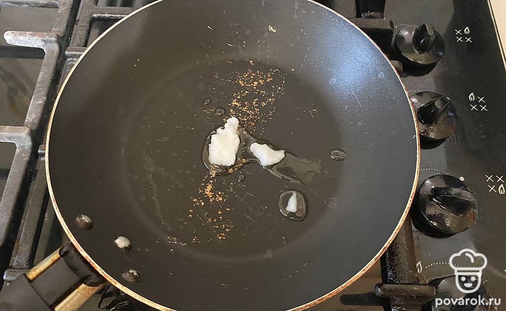 На сковороду поместите кокосовое масло и растопите его.