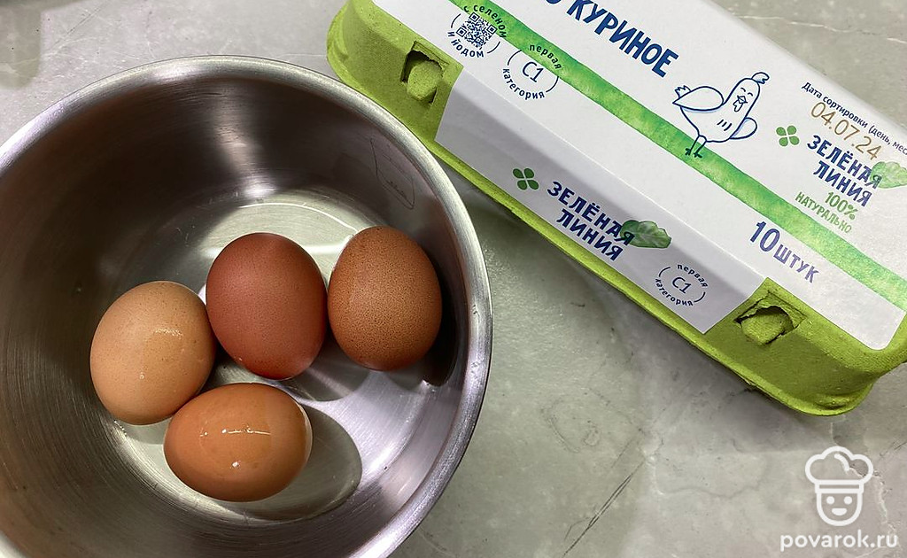 Куриные яйца отварите в подсоленной воде в течение 10 минут.