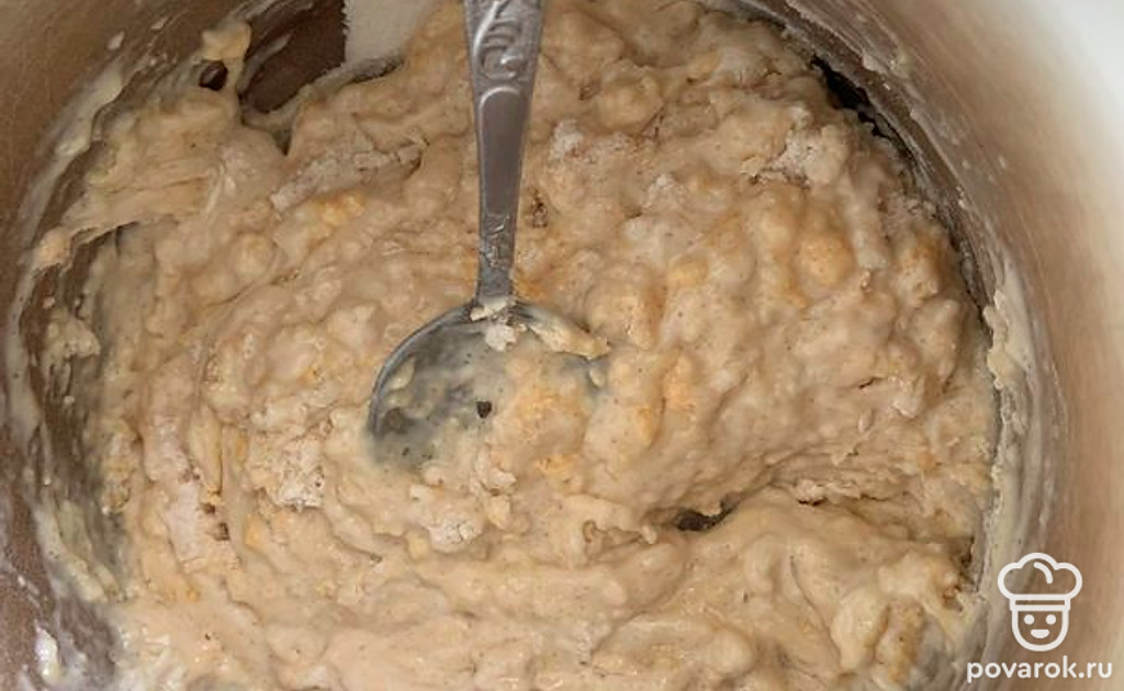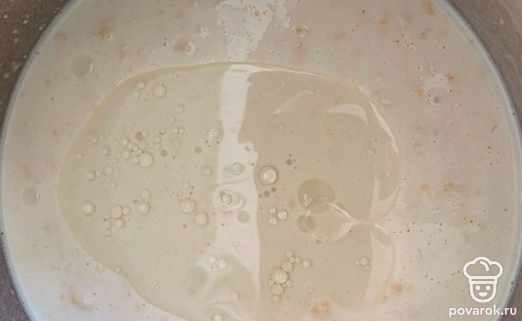 В готовое тесто добавляем подсолнечное масло и перемешиваем.