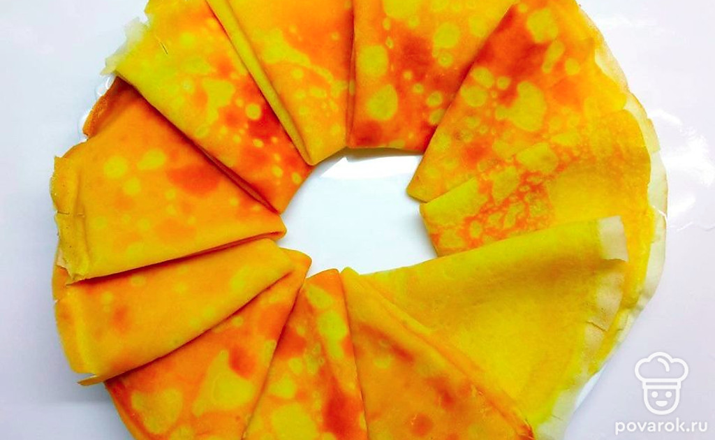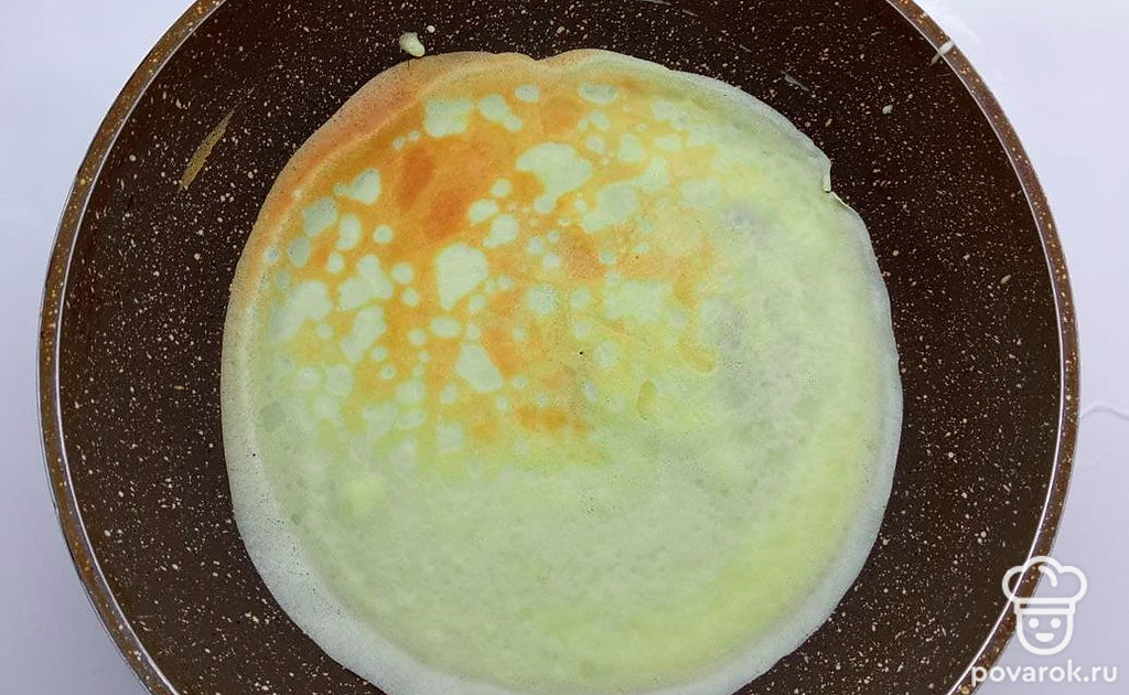 Вбейте в миску 3 яйца, добавьте туда же щепотку соли, молоко, сахар, разрыхлитель, растительное масло и муку. Взбейте миксером, чтобы получилась однородная консистенция. Разогрейте сковороду, смажьте сливочным маслом и обжарьте блины с двух сторон до золотистого цвета.