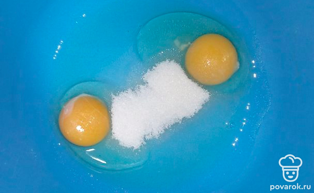 Смешать яйца с сахаром и солью.