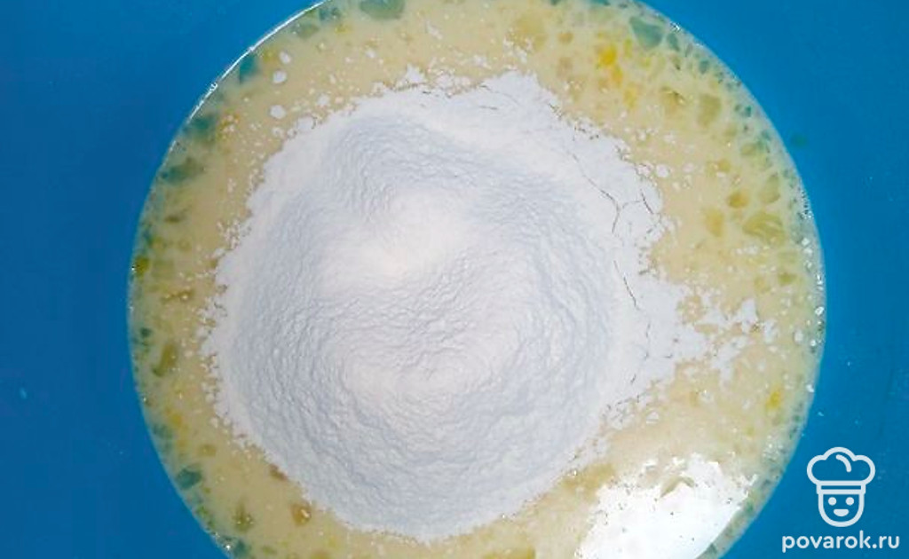 Всыпать муку и хорошо перемешать.