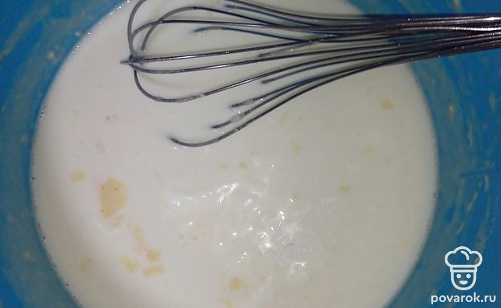 Добавить остатки молока, сметану.