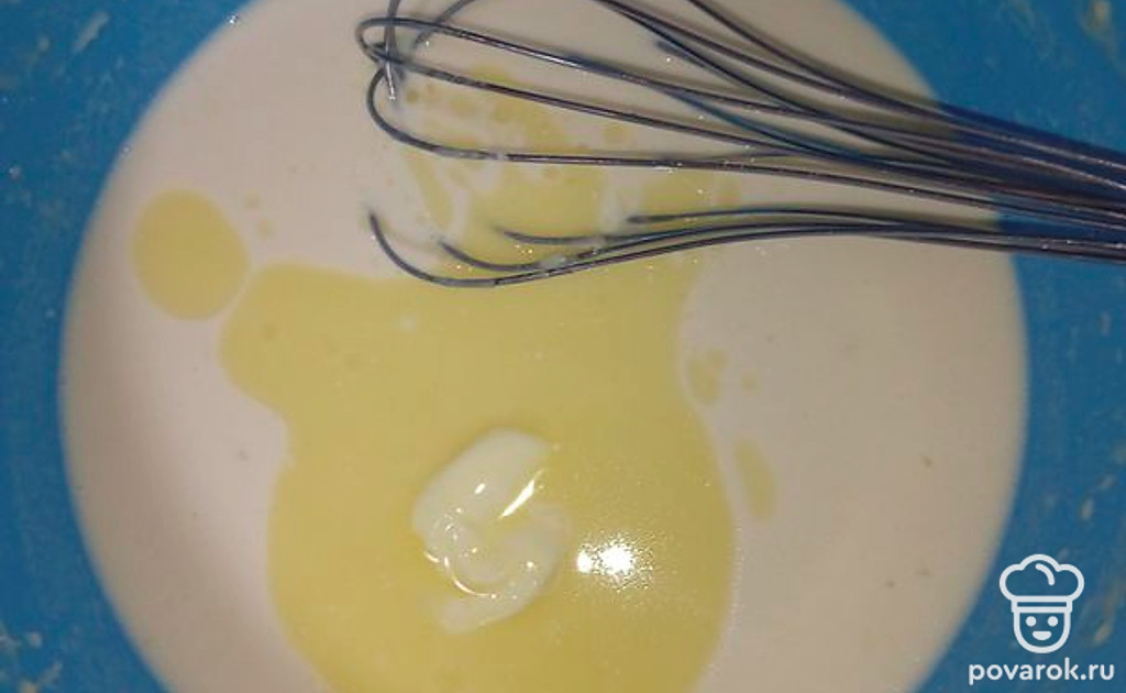 Выложить растопленное сливочное масло, перемешать.
