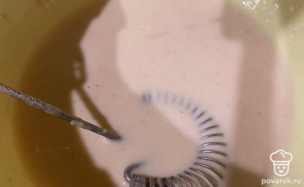 Ввести муку до консистенции очень жидкой сметаны.