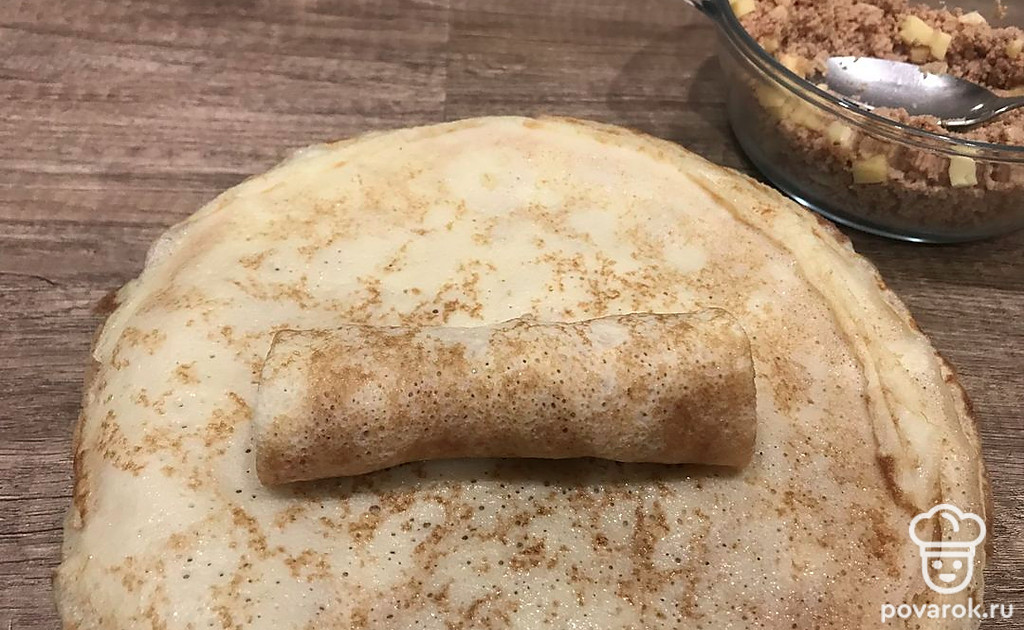 На край блина положите начинку.