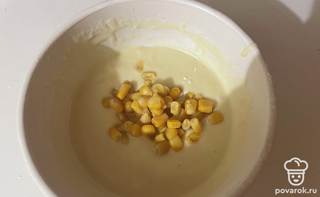 Далее к тесту добавьте кукурузу.