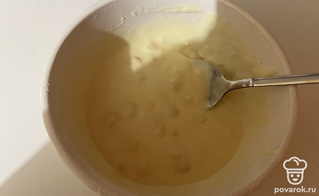 Смешивайте все ингредиенты до исчезновения комочков муки.