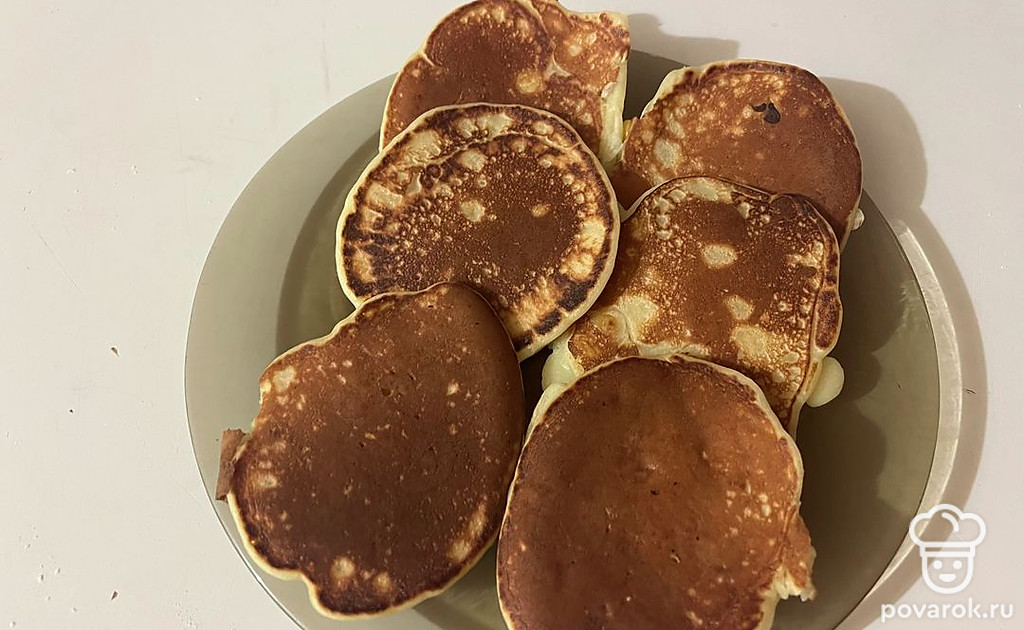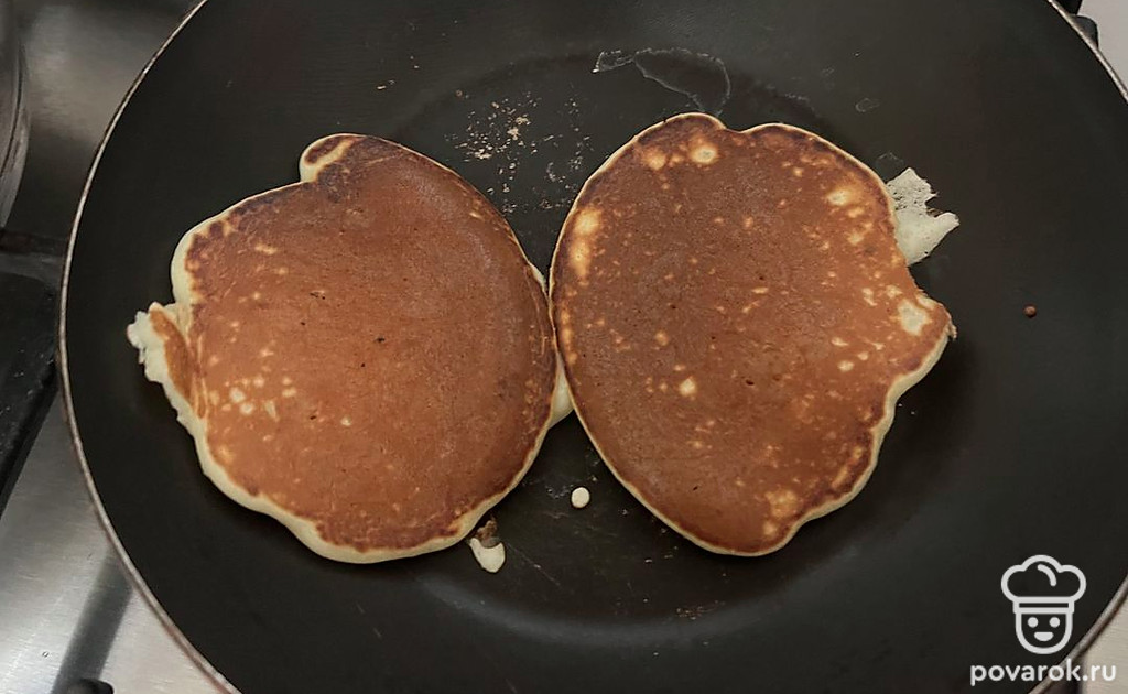 Обжаривайте каждую порцию блинчиков с двух сторон до появления золотистой корочки.