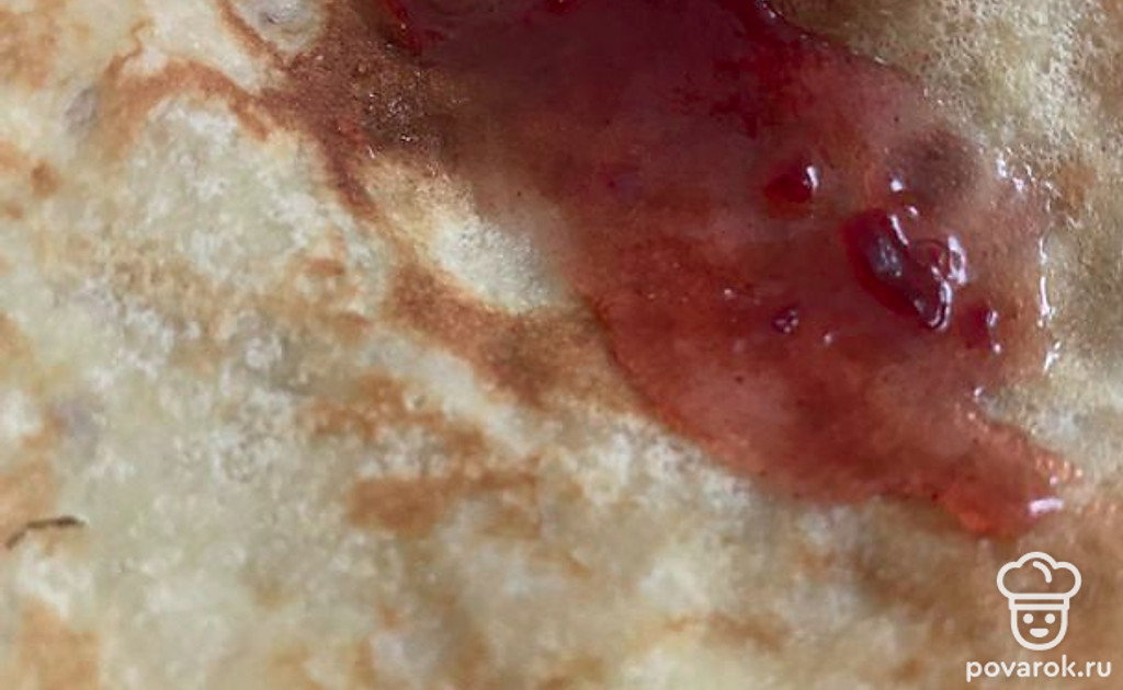 Блины готовы! Можно подать их с джемом или сгущенкой. Приятного аппетита!