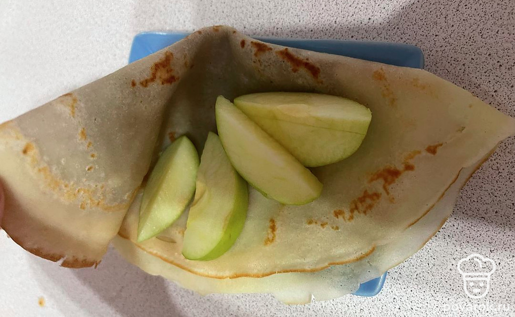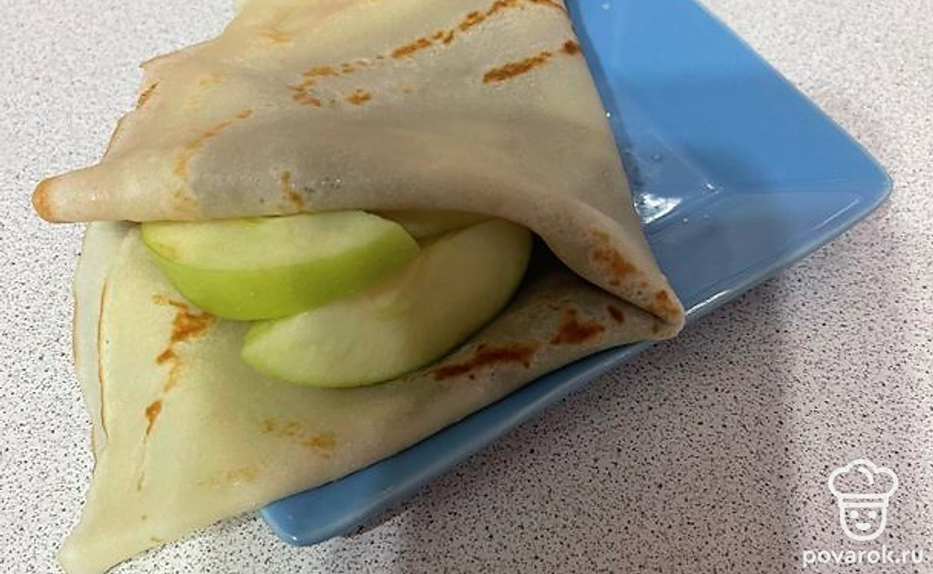 Блинчики получаются очень нежными и необычными в сочетании со вкусом яблока.