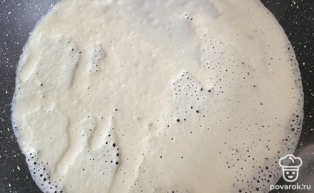 Хорошо разогреть сковороду и смазать ее маслом. Влить тесто.