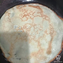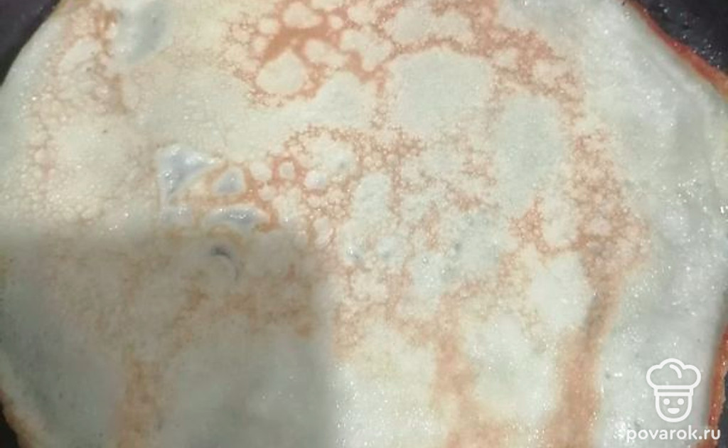 Выливаем на разогретую сковородку блин и обжариваем с двух сторон.