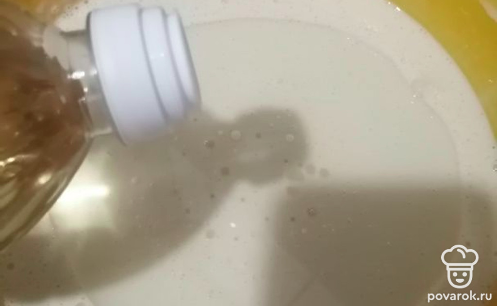 Доливаем подсолнечное масло прямо в тесто.