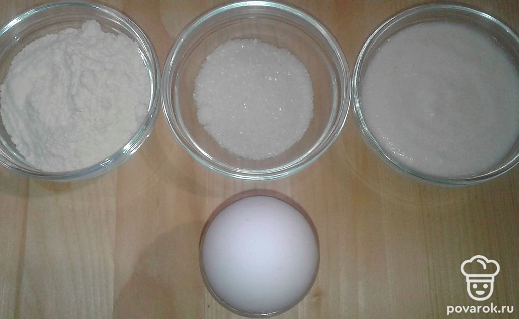 Подготовьте инредиенты: готовая манная каша, мука, сахар, яйца.