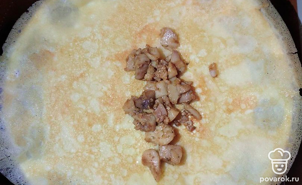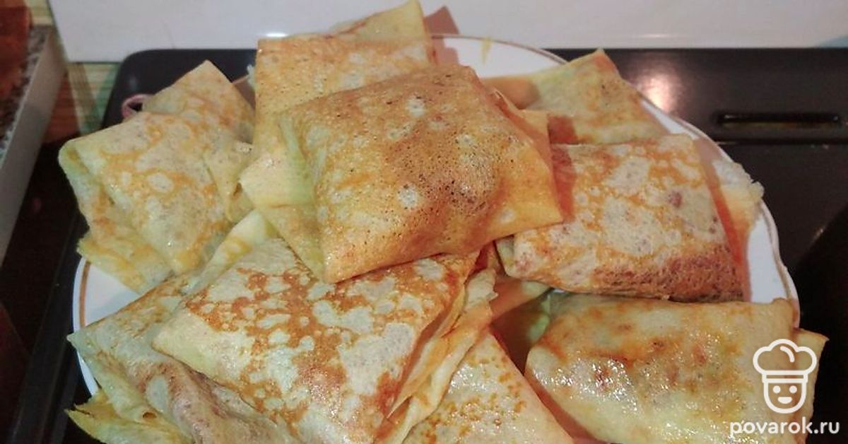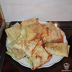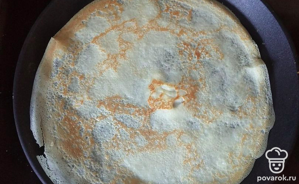 Обжарить блинчики с двух сторон, до золотистого цвета.