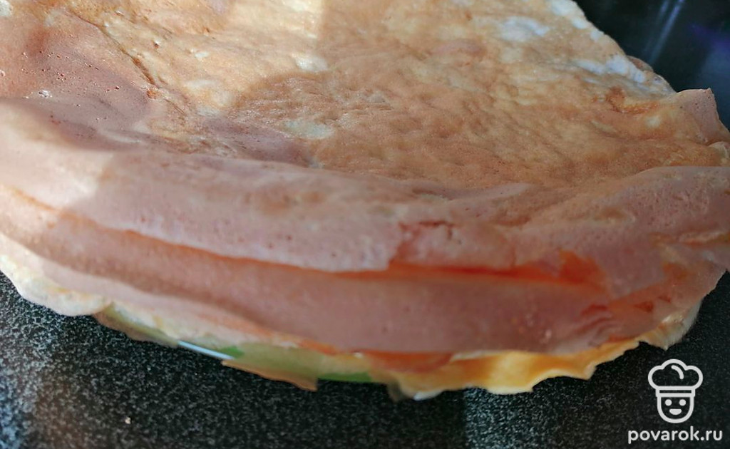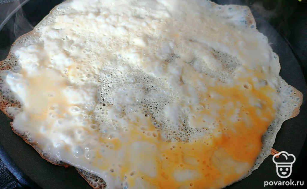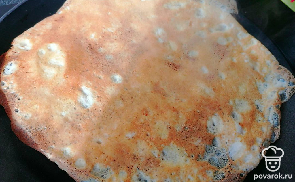 Вылить на сковородку с антиригарным покрытие токим слоем смесь и поджарить с одной строны.