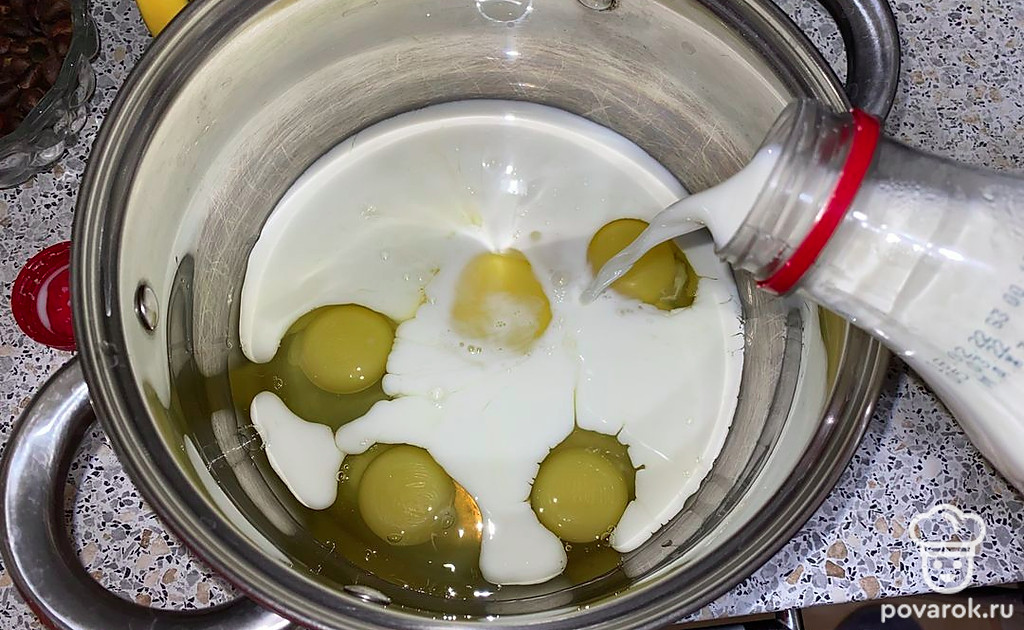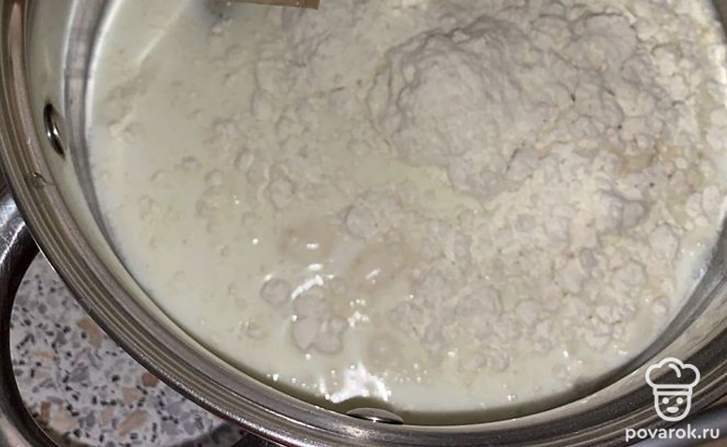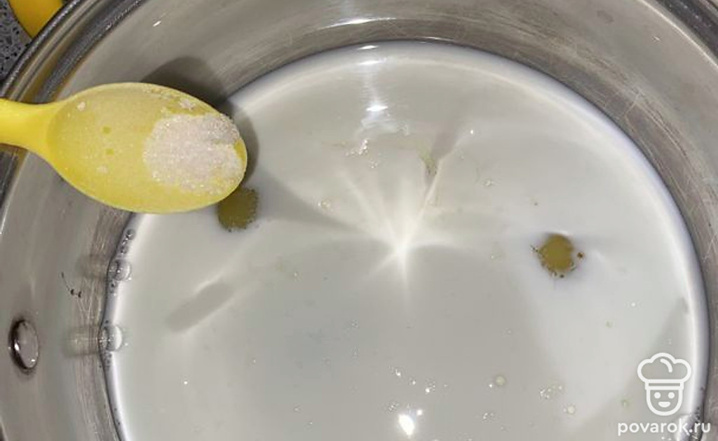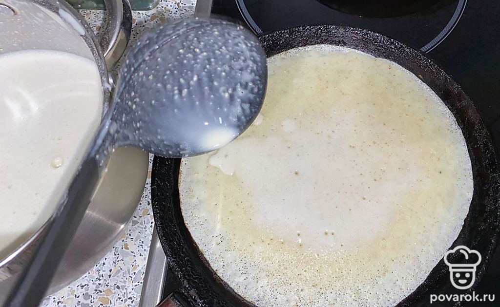 На сковородку выливаем немного теста и начинаем жарить блинчики.