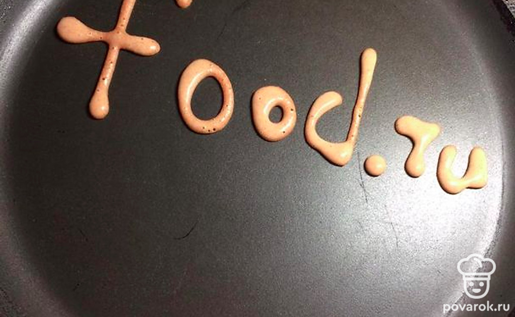 На сковороде сделайте любой рисунок из бутылочки и залейте основным тестом.