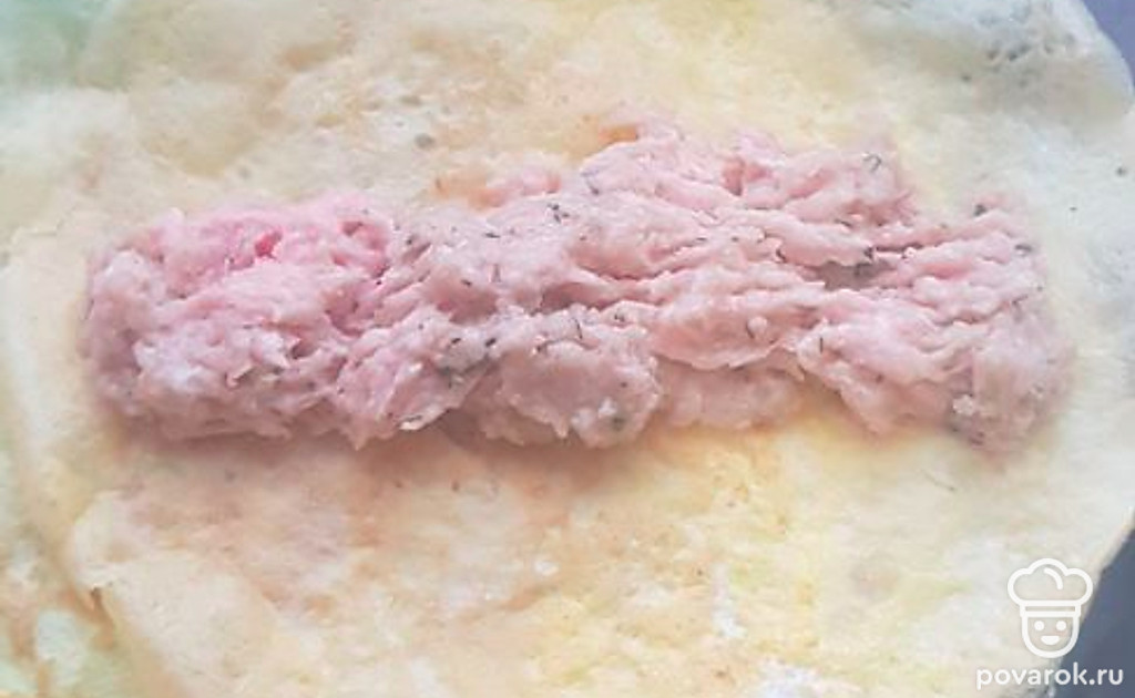 Аппетитные блинчики с сочной начинкой из свиного фарша.