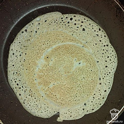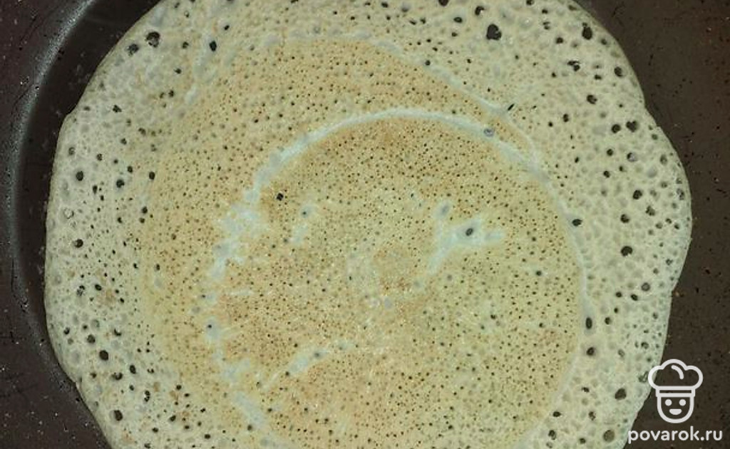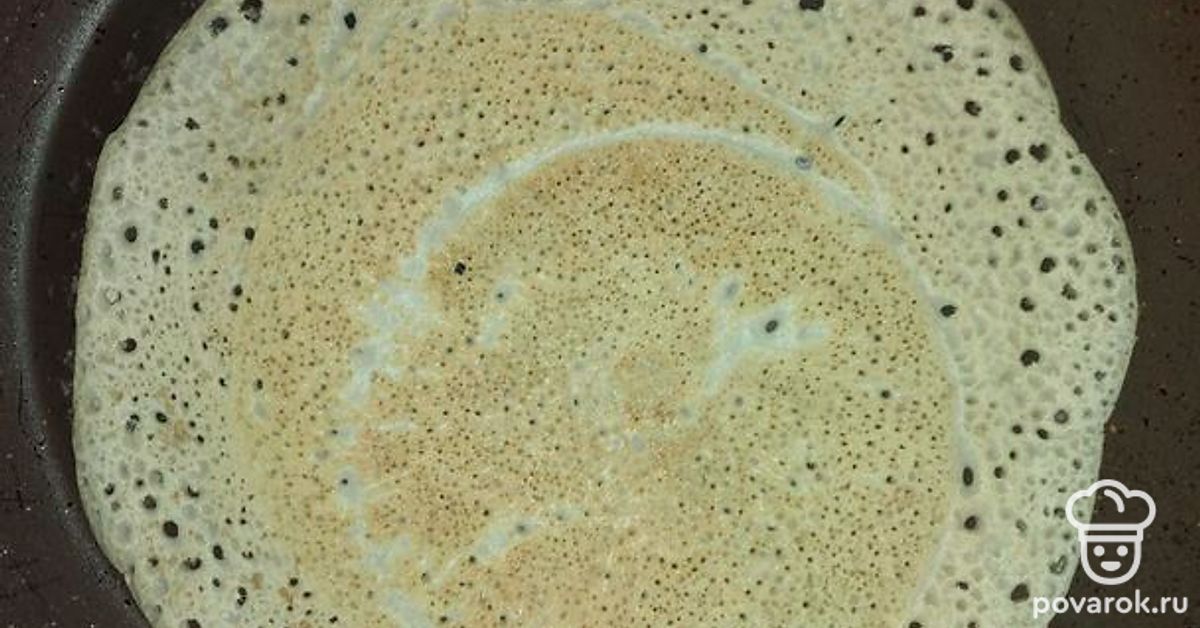 Выливаем на раскалённую сковородку массу и тонко ее раскатываем. Получаются вот такие полезные блин чики без глютена.