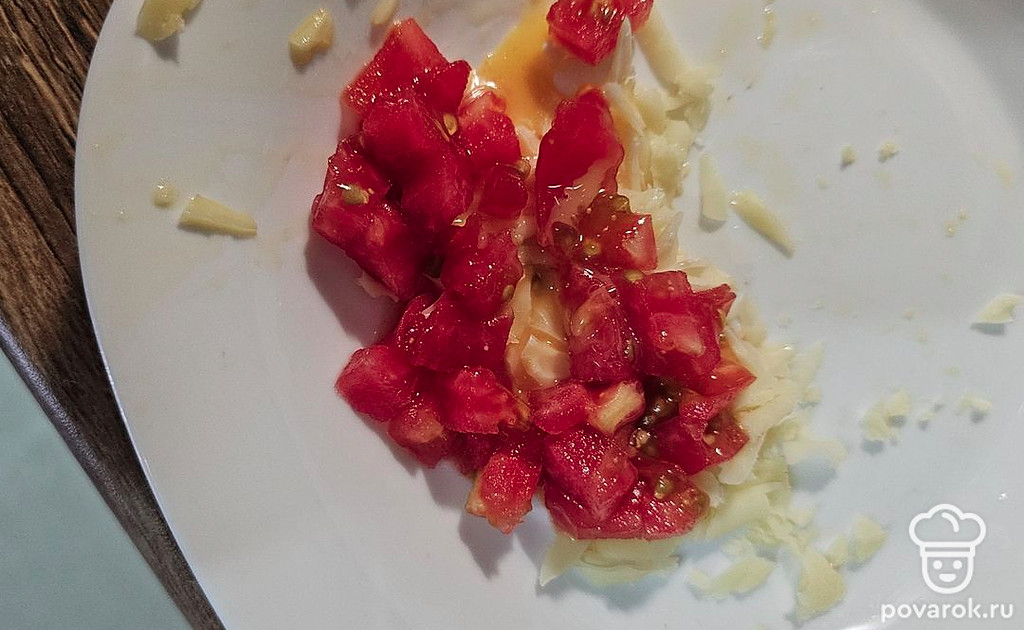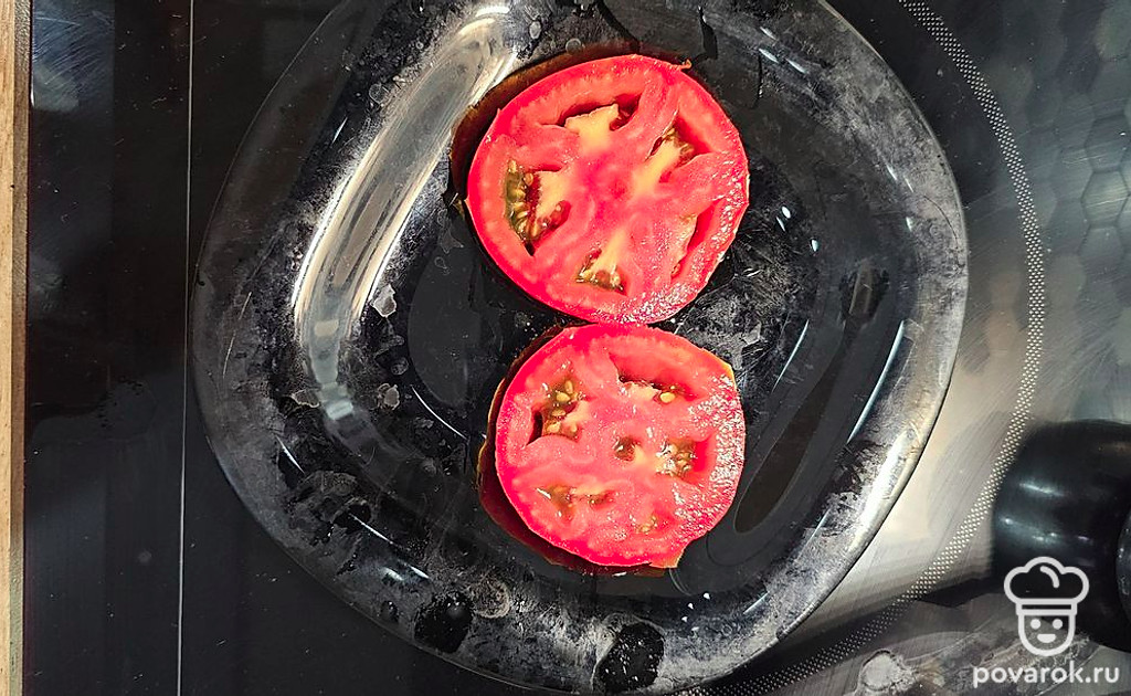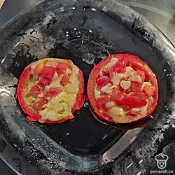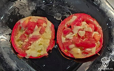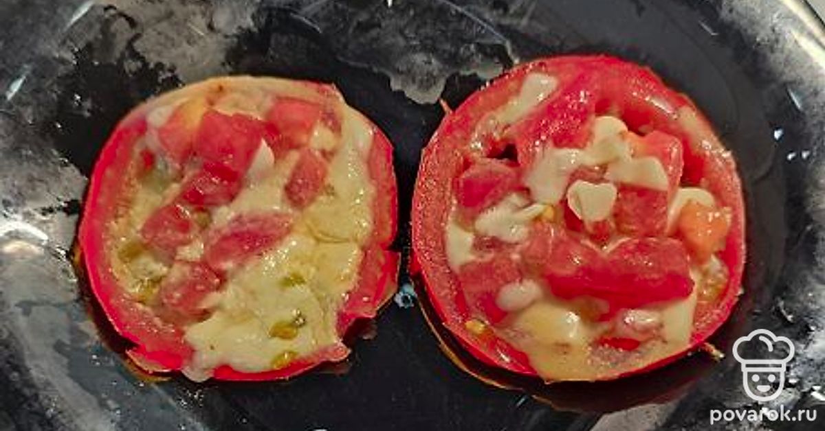 Выкладываем начинку в середину помидора и жарим 3 минуты.