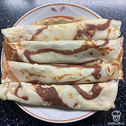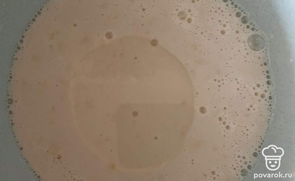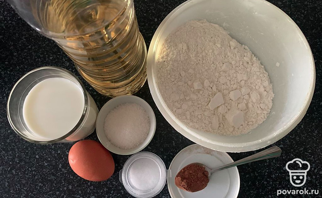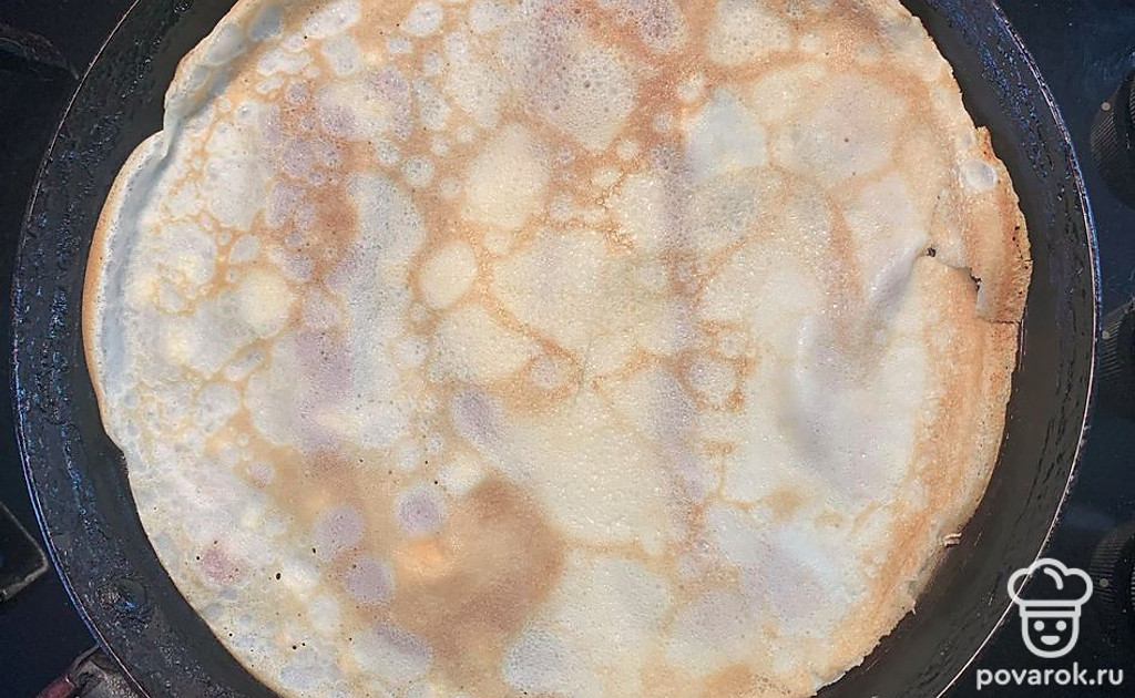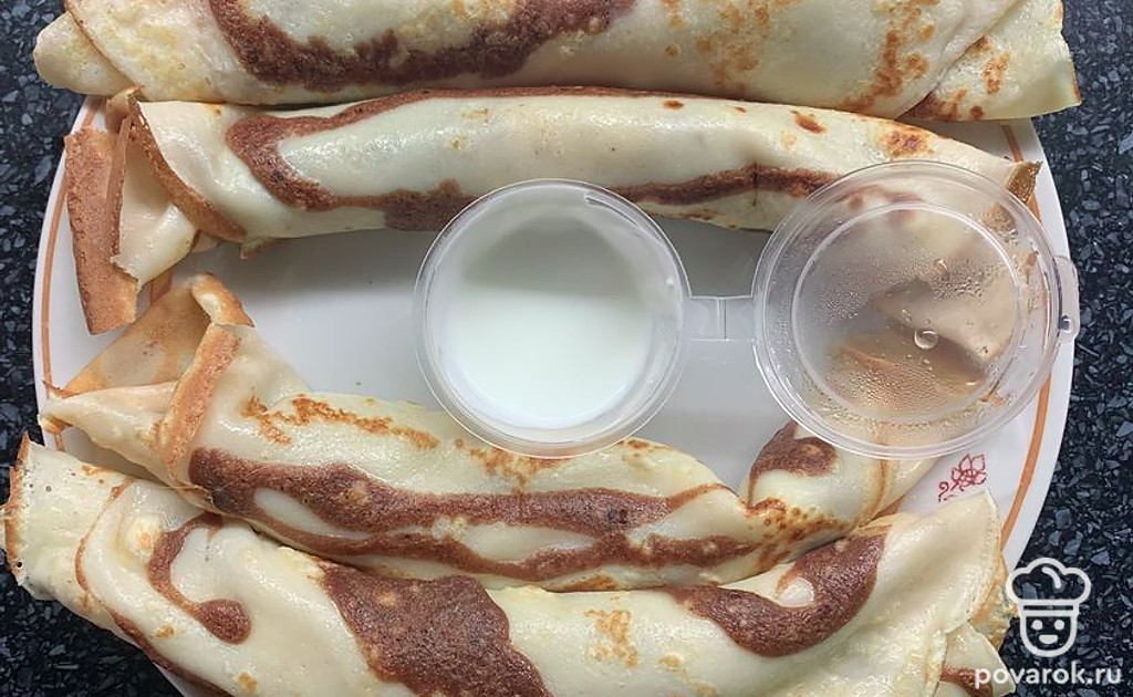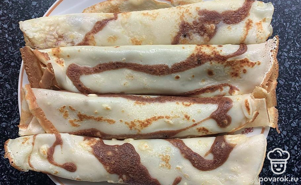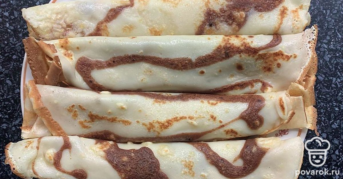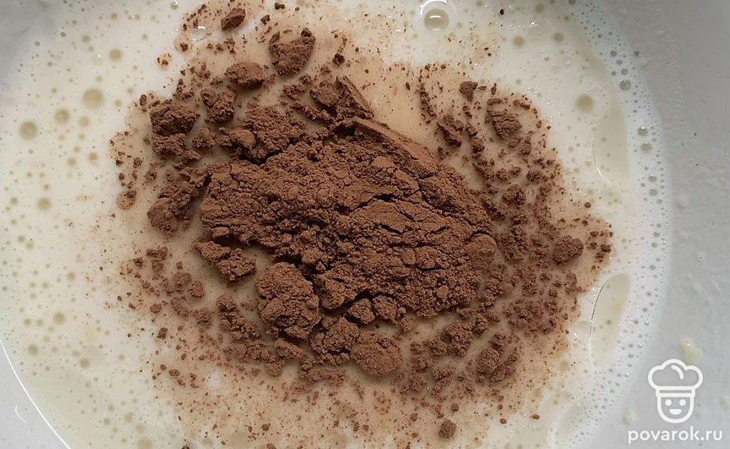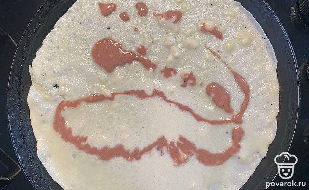 На разогретую сковородку вылить тесто, сверху полить шоколадным тестом.