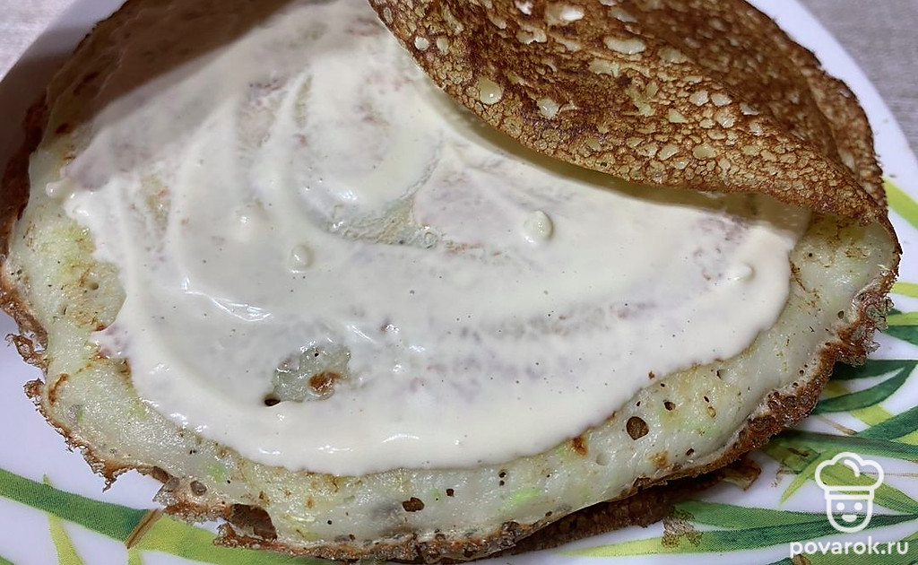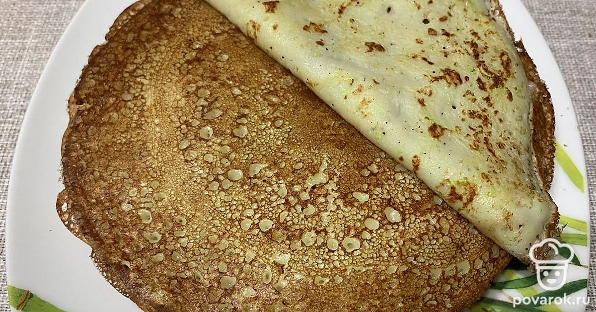 На разогретую сковороду, слегка смазанную маслом, налейте немного теста. Выпекайте блинчики с двух сторон, до готовности.