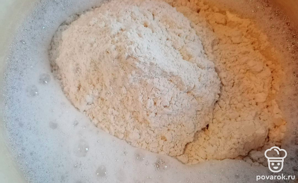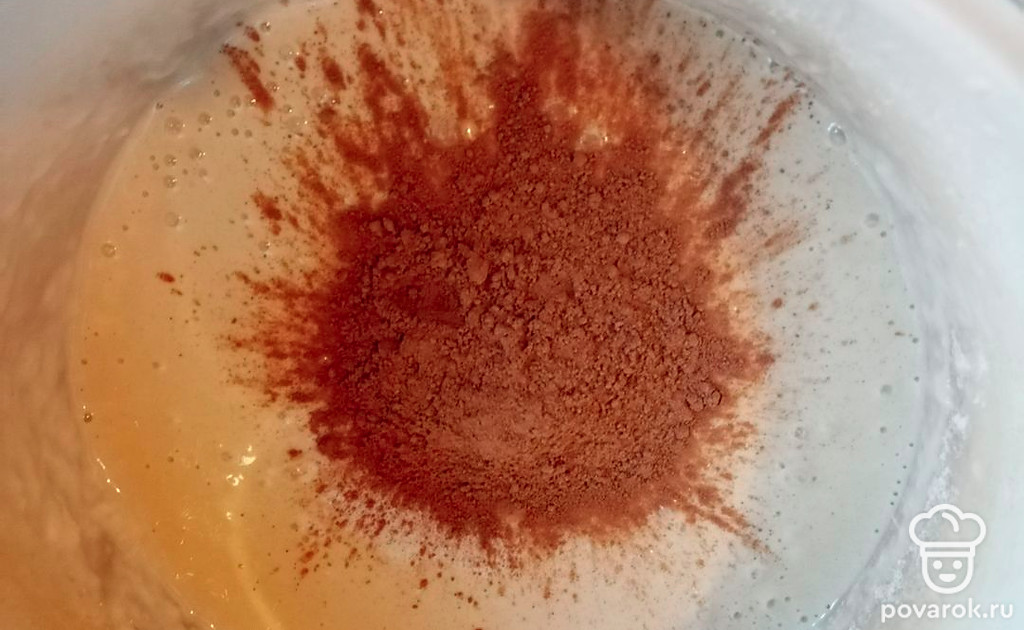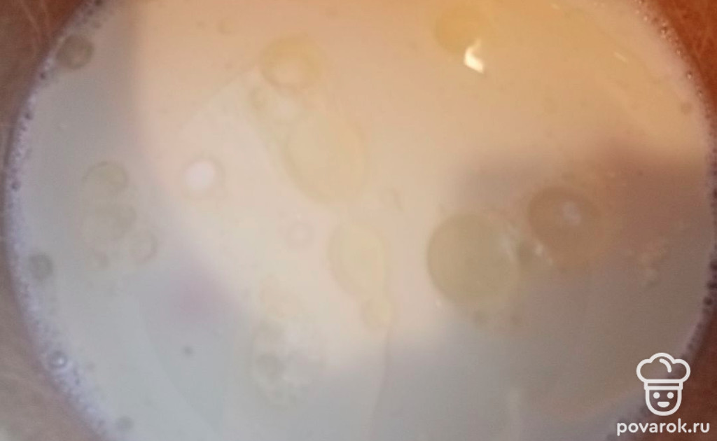 Смешать воду, молоко, яйца, масло. Взбить миксером или венчиком.