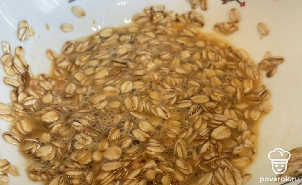 Добавляем 2 ложки овсянки и хорошо размешиваем.