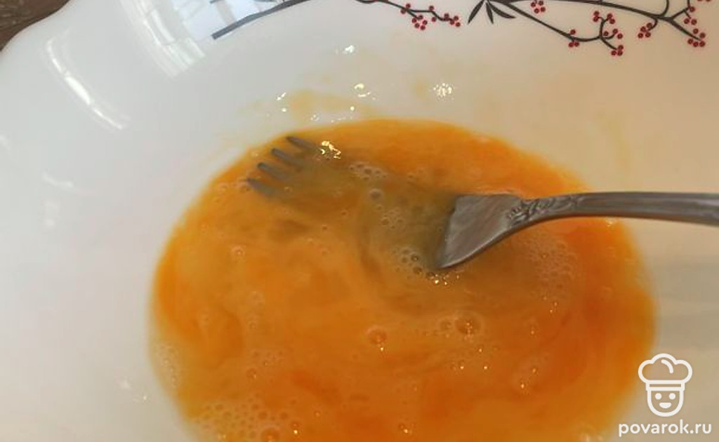Яйцо разбиваем и вилочкой взбиваем до однородной консистенции.