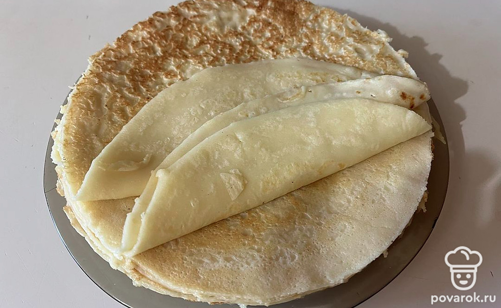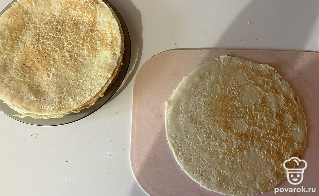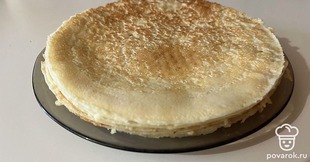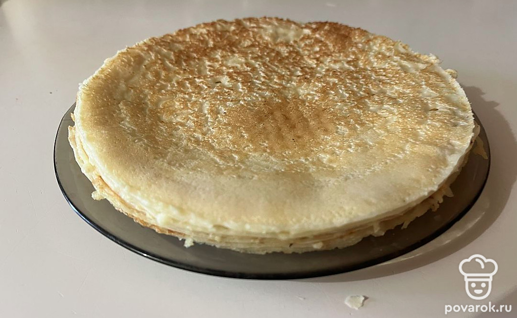 Блины по этому рецепту получаются очень нежными. Их можно использовать как коржи.