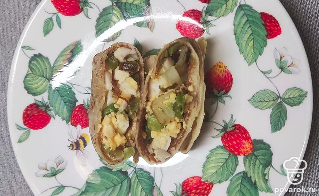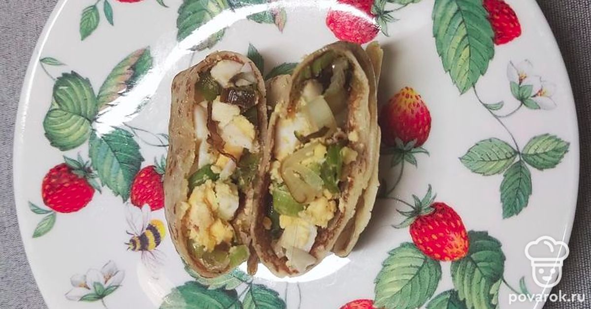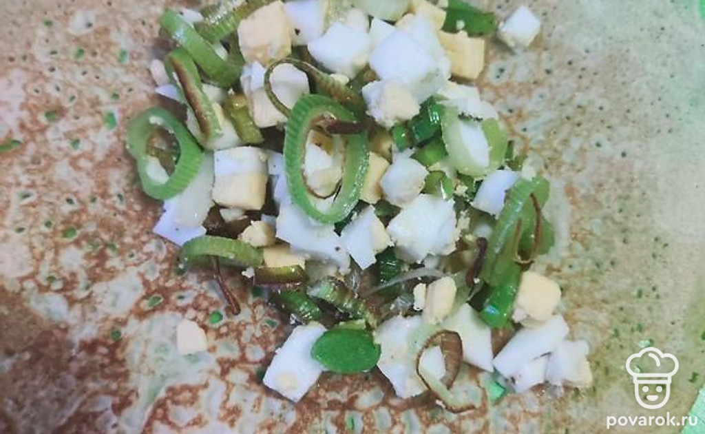 Выкладываем начинку на блин, закрываем конвертиком. Отправляем в духовку на 5-7 минут.
