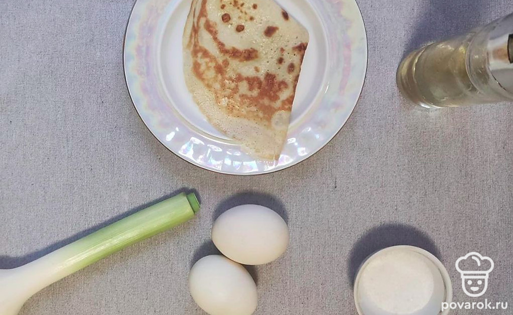 Подготавливаем продукты. Печем блины по любимому рецепту. Отвариваем яйца. Разогреваем духовку до 180 градусов при режиме «верх-низ». Ставим на средний огонь сковородку.
